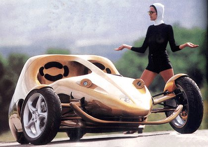The mechanical components, including the five-speed sequential gearbox, were directly borrowed from Yamaha motorcycles, providing not only distinctive performance but also rapid gear changes. The unique styling of the Scorpius featured a Formula 1-inspired long snout with a moustache-shaped spoiler and streamlined motorcycle wheels at the rear, separated by a double vertical exhaust tailpipe.