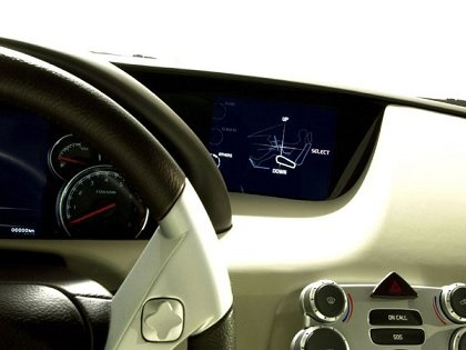 The SCC employed advanced technologies to further optimize the driver's view. Upon the driver's seating, a sensor identified the eye location, and the seat automatically adjusted to provide the best field of vision. Pedals, steering wheel, and center console were then moved to their appropriate positions automatically. The concept also incorporated "transparent" front roof pillars, designed in a lattice structure, while B-pillars were concave inside the cabin.