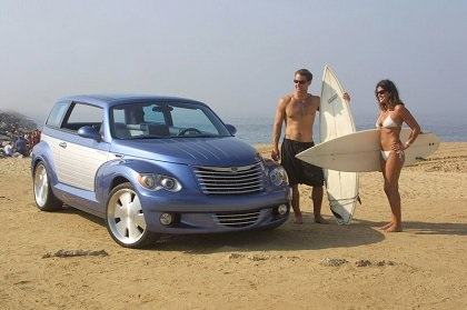 Designed with the average surfer in mind, the exterior of the California Cruiser exuded a laid-back yet stylish vibe. One distinct feature was the fog lamps, adding a unique flair to the design. While bearing resemblance to the PT Cruiser, the California Cruiser introduced new elements such as an arched headlight cutout with a distinctive tooth at the bottom and a chrome radiator grille.