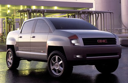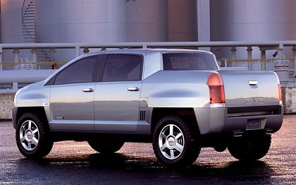 At the GMC stand, you'll find the Terra4 concept pickup truck, showcasing a design evolution from the angular style of previous concepts like the Terradyne and Terracross. This concept signals a departure from Chevrolet's design language, showcasing GMC's distinct aesthetic direction. The Terra4 exemplifies the capability of a pickup truck with its sliding aluminum panel covering the short yet deep cargo body, along with convenient side doors above the rear wheels for easier loading of luggage. Get ready to redefine your expectations of utility vehicles with the groundbreaking 2002 GMC Terra4 Concept Truck.