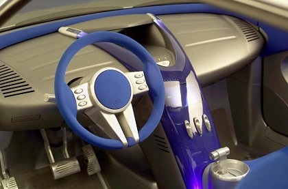 The ccX featured a blue-themed instrument cluster center-dash mounted for reduced driver fatigue and better visibility. A seven-inch multi-display monitor displayed DVD entertainment, navigation, and audio systems, with a remote control panel conveniently located on the center console.