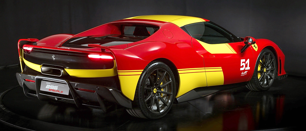 Compared to the standard 296 GTB, this version is lighter and produces about 20% more aerodynamic downforce. Inside, it has racing seats trimmed in black Alcantara, with inserts made from the same fireproof fabric used in Ferrari drivers’ race suits. Power comes from a plug-in hybrid setup combining a twin-turbo V6 and an electric motor, with a total output of 868 hp.