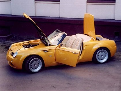 The 2003 Cardi Body II made its debut at the Moscow International Auto Show (MIMS 2003) as an exclusive two-seater roadster developed by the Russian design and tuning firm, Cardi. This unique convertible is based on the BMW 3 Series platform, likely utilizing the E36 chassis, and is powered by a 2.5-liter inline 6-cylinder engine producing 196 horsepower. The engine is paired with a manual 5-speed gearbox, delivering power to the rear wheels and ensuring an engaging driving experience.